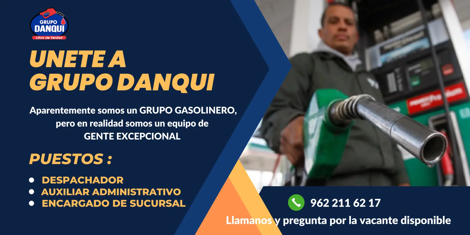 El despachador de gasolinera encargado de atender a los clientes, llena los vehículos de combustible, cobra y mantiene limpia la estación.